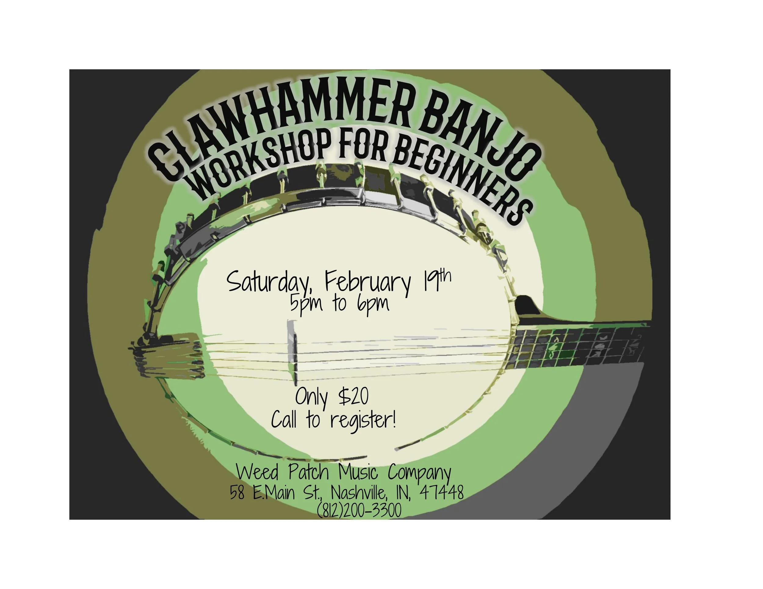 Join us for our Upcoming Clawhammer Banjo Basics Workshop on Saturday, February 19th from 5pm to 6pm!